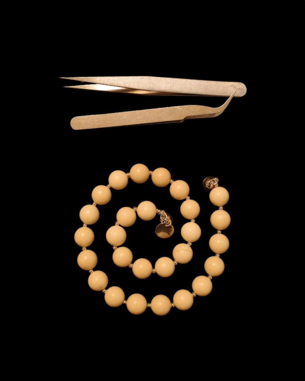 Due to the nature of the stones, each necklace is subtly unique. Variations in shape, tone, and texture are part of the material's quiet character, imperfections embraced, not corrected.