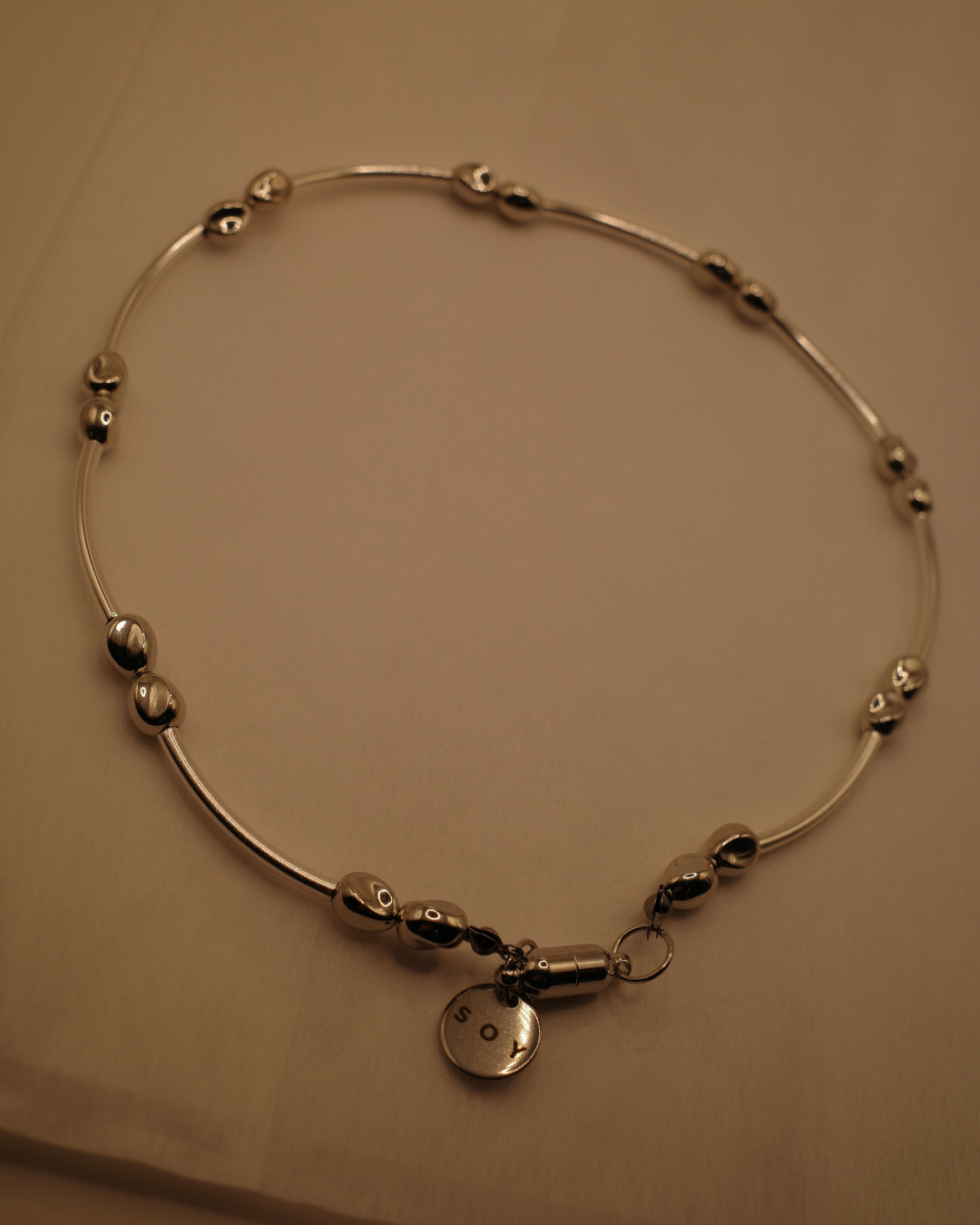 Faux Silver Beads and Copper Tubes with Black Elastic Cord