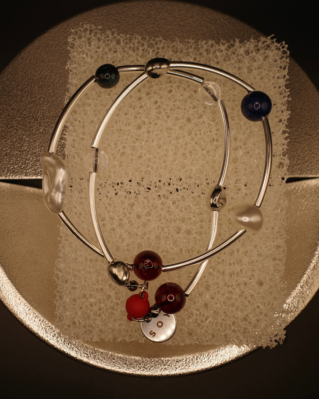 Mixed Beads and Copper Tubes with Black Elastic Cord and Magnetic Clasps